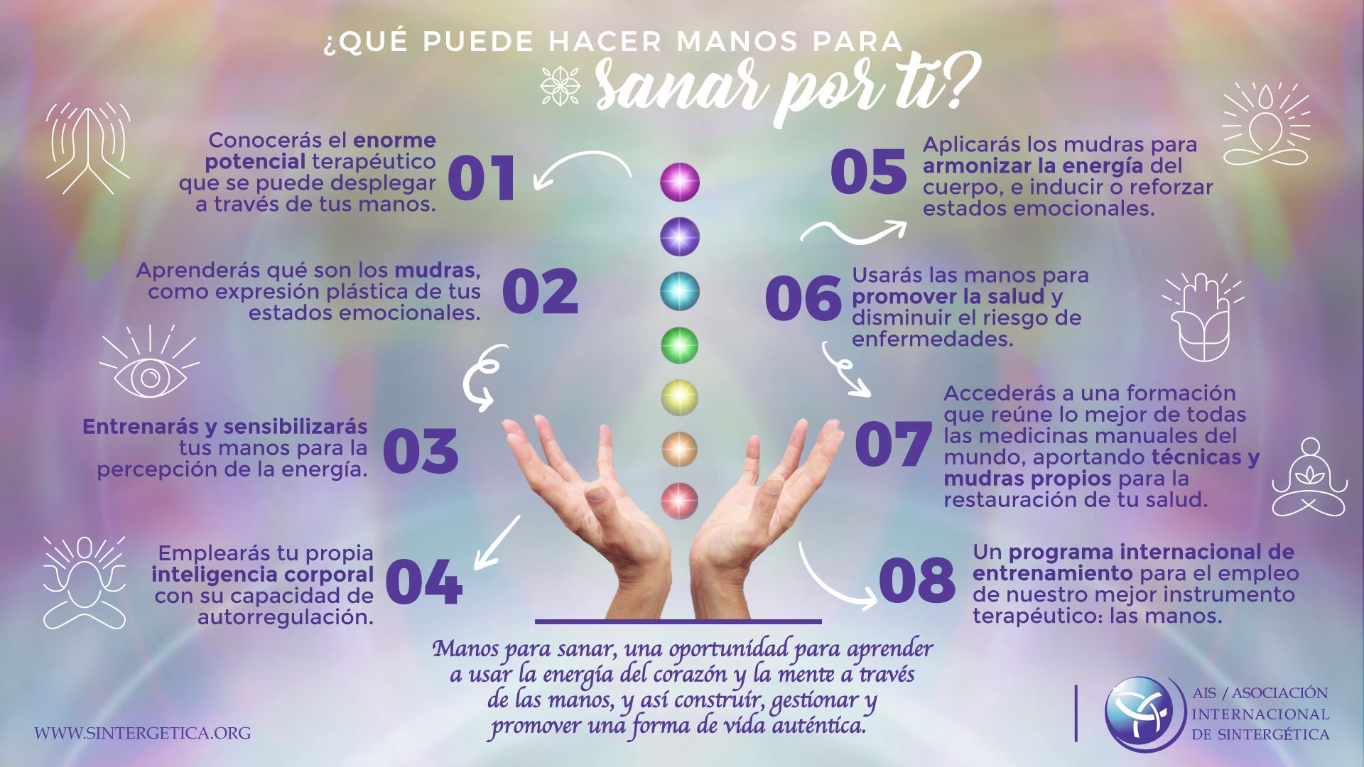 Manos para sanar puede ser aplicada tanto como método y filosofía de vida, como terapia aplicada al paciente a nivel profesional. Permite despertar en nosotros el potencial sanador, un atributo humano por excelencia que necesita ser activado. Nos familiariza con la anatomía sutil del ser humano.